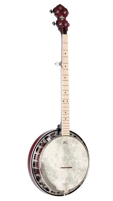 Ortega - OBJE400TFR - m. Pickup og Taske - er en traditionel 5-strenget banjo med pickup i Transparent Fade Red semi-gloss. Den har en smuk resonator af "vatteret ahorn". Banjo'en leveres med en Deluxe gigbag.