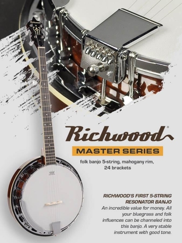 Richwood - RMB-605 - Master Series folk banjo 5-string - Richwood's første 5-strengede resonator banjo. En utrolig værdi for pengene. Al din bluegrass og folk-påvirkning kan kanaliseres ind i denne banjo. Et meget stabilt instrument med god tone.