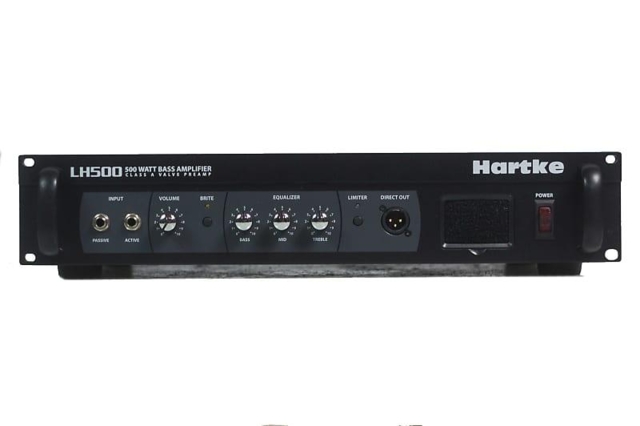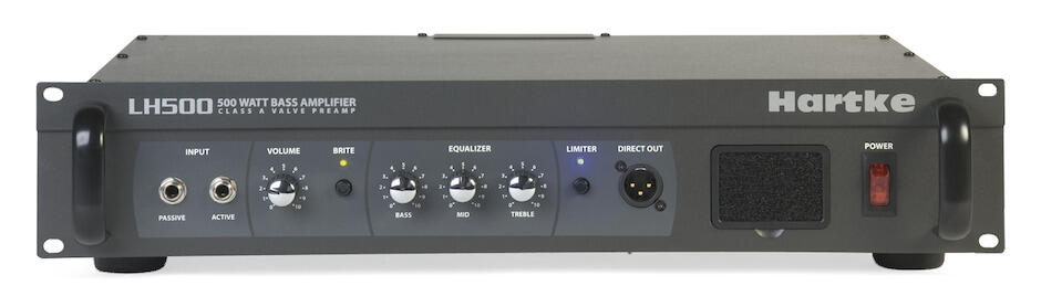 Hartke LH500 - LH-serien består af to kraftige toppe og er på 500W med en valgfri limiter knap. Balancerede XLR stik og effekt loop. I forforstærkeren sidder et 12ax7 rør, som giver en varm, organisk lyd. Den er i "2 unit rackformat" med et kraftigt metalchassis og gode håndtag.