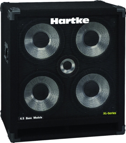 HARTKE 4.5XL - Bas kabinet med 4x10" aluminium-membran og basrefleks og en 5" tweeter, 400W RMS (8 Ohm) og 2 x jack input (parallel wired). Giver en meget ren, klar og nuanceret  tone og uden at "farve" lyden.