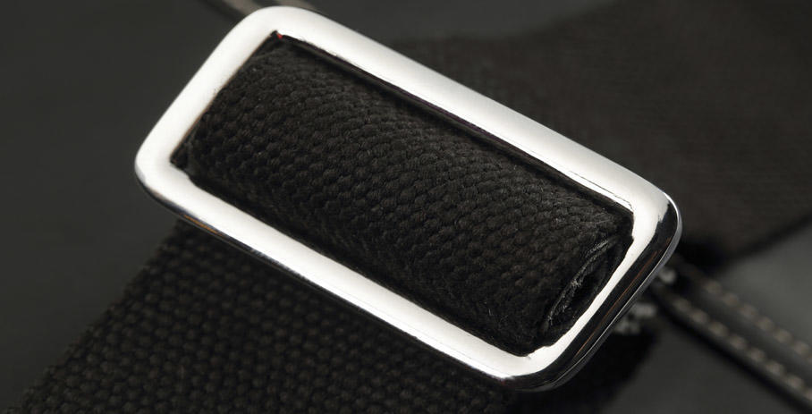 - 2 padded cotton shoulder straps (80 mm / 3 1/8" wide) with metal hardware