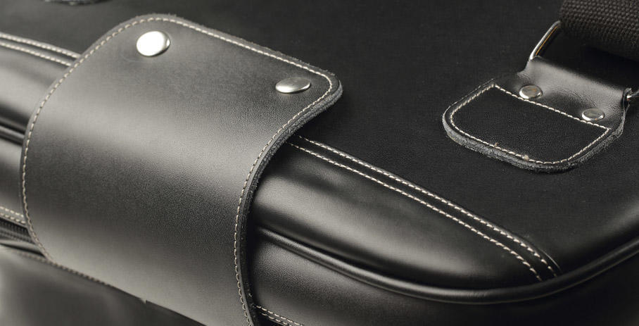 Warwick - Ægte Læder - Hollow Body Electric Bass Gig Bag - Lækker håndsyet bas taske i læder til hollowbody el-basser. Passer til de fleste standard hollowbody-basser. Tasken er lavet med 5 lags polster: 2 mm EVA skum, 5 mm Polyethylene skum, 1.5 mm plastic plate, 15 mm skum, 5 mm foam-adhered velveteen. Ekstra forstærkning rund i kanten og masser af lommer. Super lækker kvalitets taske.