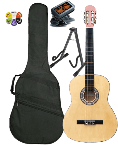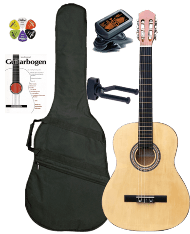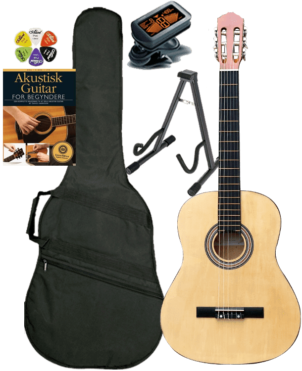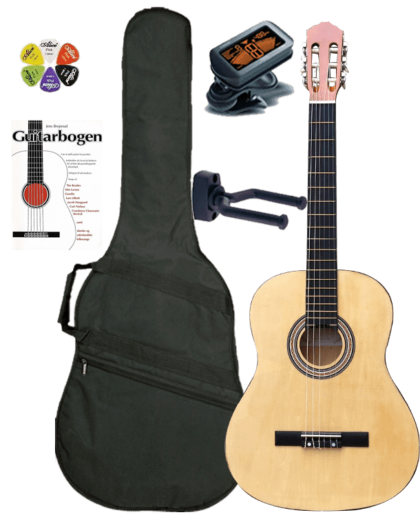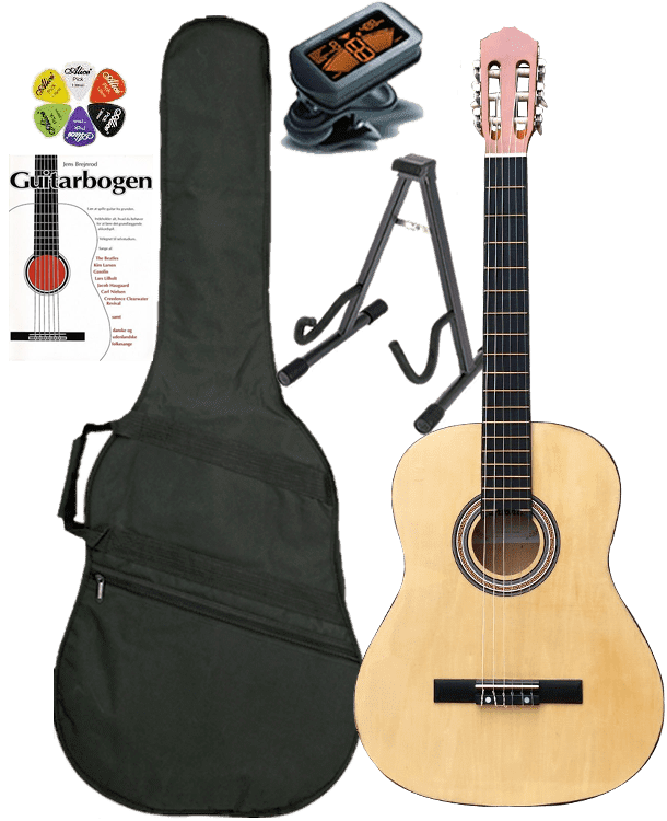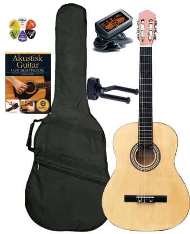 Her er een af vores mest solgte guitarer med alt hvad der skal bruges for at komme igang med at spille guitar. Guitaren er i 3/4 størrelse og anbefales til børn fra ca. 7-10 år.