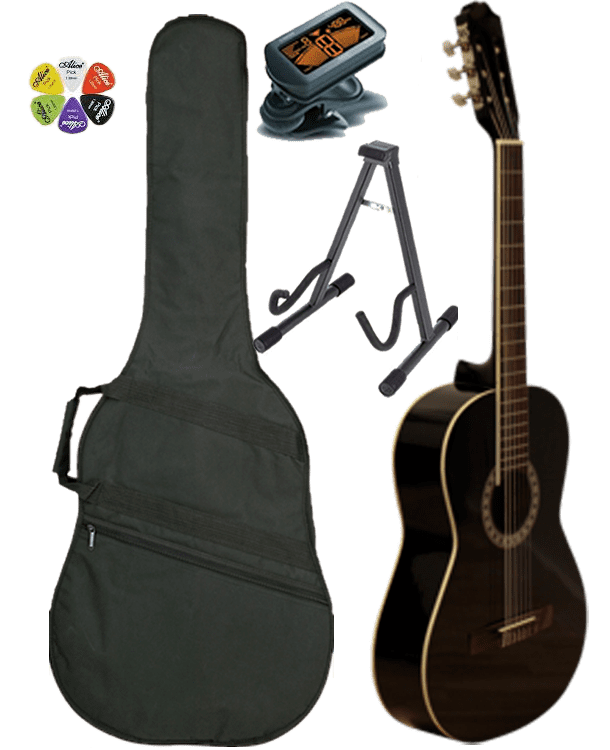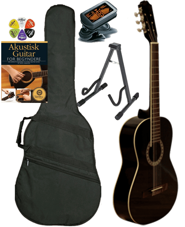 Akustisk guitar C-777BK pakketilbud **Spar 87,50 DKK** - een af vores absolutte bestsellers. Du får her en rigtig flot og velklingende guitar i flot design med en højpoleret sort glans lak. Der medfølger alt hvad du har brug for når du skal i gang med at lære at spille guitar.