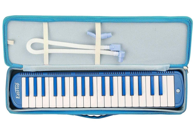 Easttop Melodion 37 keys - Model BM-37SL Blå - Et perfekt begynderinstrument til børn. En "smooth", responsiv melodika med 37 tangenter. Fremstiller en rig harmonika-lignende tone. Utroligt let at spille på og lære at placere fingrene korrekt og praktisere blæseteknikker. Leveres med et mundstykke, en slange, rengørings klud og en eksklusiv taske.