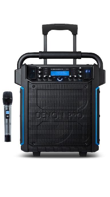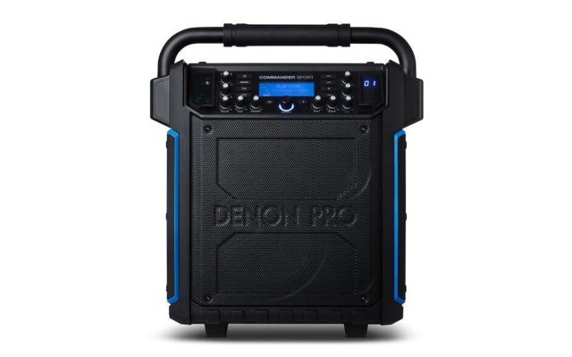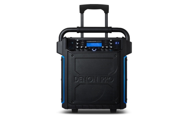 Denon Commander Sport - Professionelt mobilt P.A. system - WATER-RESISTANT (Trolley) med en 8" bas og på 120W RMS. Så er du klar til at tage i Pool'en, Parken, gågader og generelt i det offentlige bybillede / byliv. SUPER kraftigt output! 3 timer på fuld styrke og 8 timer på halv styrke. Masser af tilslutningsmuligheder.
