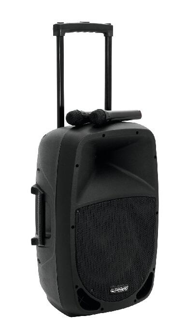 Portable PA system with 2 UHF receiver units, audio player and Bluetooth