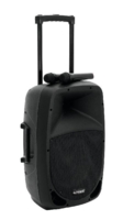Soundsation - GO-SOUND 12AIR - Soundsation GO-SOUND tager endnu et skridt fremad og bliver til Go-Sound Air. Mens alle funktionerne fra den tidligere Go-Sound AMW-serie (batteri eller netstrøm, trolley med teleskophåndtag, to trådløse VHF-mikrofoner, USB/SD-kort/BT-afspiller, Mic/Line-indgange, Eco-effekt, 5-bånds EQ osv. .), tillader den nu kontrol af multimedieafspilleren og Aux Stereo Input via den nye "Go-Sound Air" app til både Android- og iOS-enheder (download den fra Google Paly® eller AppStore®). Det har aldrig været nemmere at afspille og styre dine yndlingsafspilningslister fra din mobiltelefon: Bare tilslut højttaleren og appen via BT til din tablet eller telefon, så er du færdig. Som med den tidligere AMW-serie holder batteriet fra 2,5 timer (maksimal volumen og fuld opladning) til 4 timer (normal volumen, fuld opladning).
