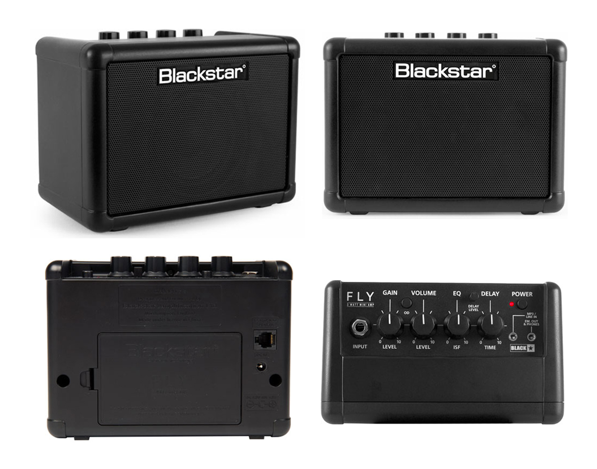 Blackstar Fly 3 mini combo-forstærker på 3 watt med 1 x 3" højttaler, 2 kanaler, tape delay effekter, MP3/Line in. Kan også køre på batterier.