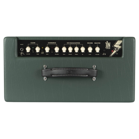 Blackstar JJN-20R MKII Combo - Jared James Nichols Signature - 2 kanals combo i en signature udgave fra Blackstar, lavet i samarbejde med Jared James Nichols (Blues Guitarist). Kommer med en 12" Celestion G12T-75 højttaler, 20 Watt - der kan ændres til 2 Watt (til når man skal øve derhjemme). 1xECC83 rør på preamp delen og 2xEL84 på power amp delen. På kontrol panelet kan man vælge Bluespower channel selector (Jared James Nichols).
