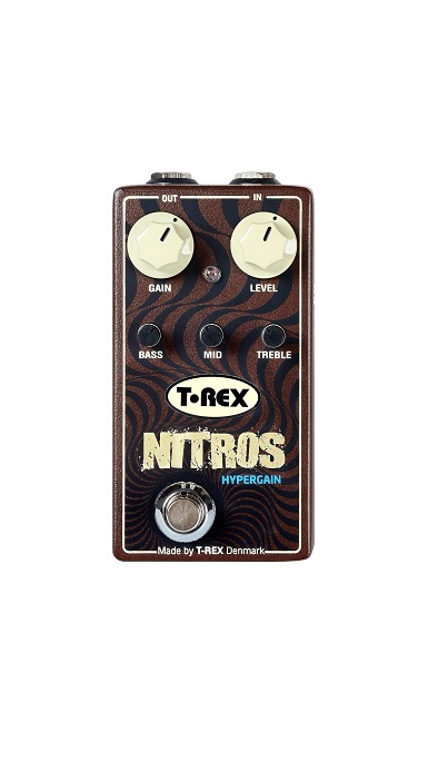 T-Rex - Nitros Hypergain - T-Rex Nitros har helt sikkert en meget "punchy and scooped high gain distortion", men det er også den mest justerbare dirt pedal fra T-Rex. Den vil også gøre 80'er hard rock lyden totalt som den skal være. Og det er når gain knappen er skruet højt op... skruer du mere ned, er indstillingerne gode, hvis du søger texas boogie-rock.