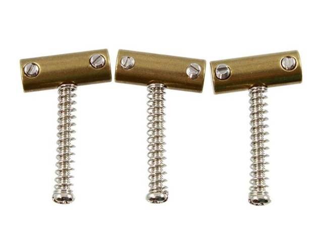- Bridge saddles "Tilt-compensated"(set of 3) with springs and screws for Tele®, Brass.