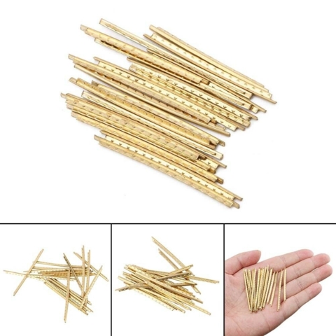 Guitar Fretwire Western Guitar 21 frets i kopper (Nickel / Gold) - Færdig klippede "frets" bånd - lige til at montere på halsen. 21 stk. - dvs. der er til 21 bånd på halsen. Passer til Western guitar.