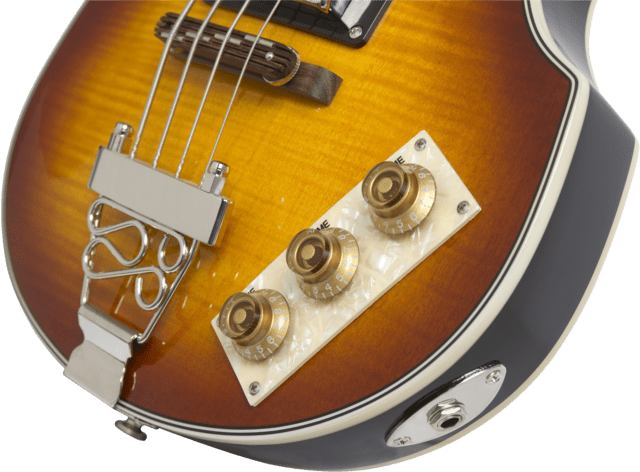 Epiphone - Viola Bass Vintage Sunburst - British Invasion Era Classic - Viola-elbassen genskaber den Britiske klassiker. Med en let og afbalanceret ahorn krop og hals i ahorn, gribebræt i Okoume - med NYR ™ og NYT ™ bas mini humbuckers.