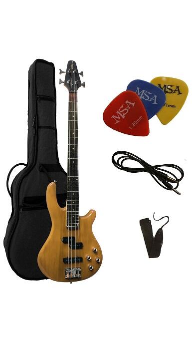 Vision JB10 Natur - pakke med taske, rem, kabel og plektre - Begynder el-bas-pakke fra Vision med 1x split single coil og 1x single coil. Tone og Volumekontroller. Inkl. taske, rem, kabel og plektre. God til prisen.