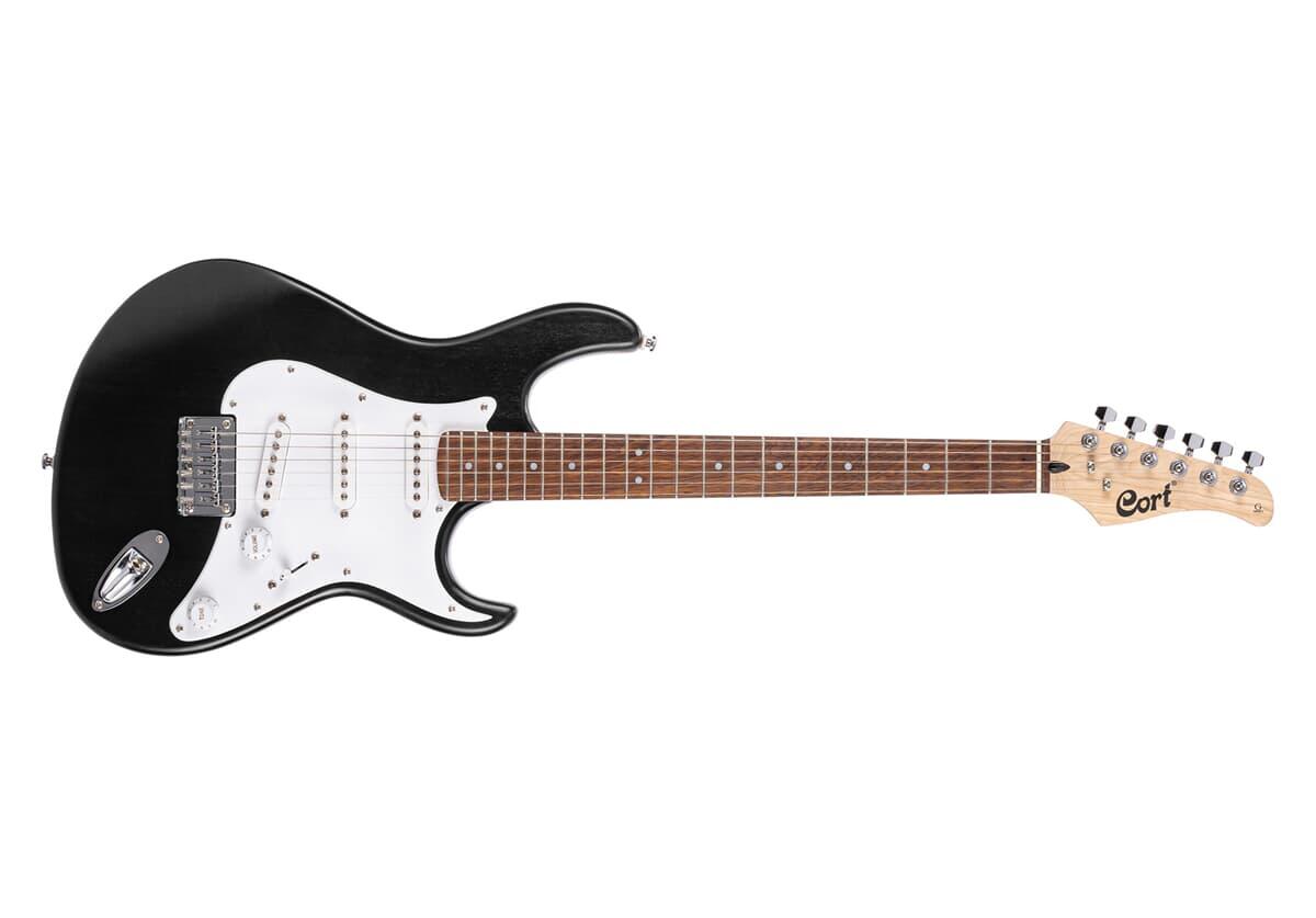 Cort - G100 - Open Pore Black - God begynder el-guitar lavet i "Meranti" træ, 22 frets, ahorn hals og Jatoba gribebræt. Dot indlæg og Powersound pick-upper. Rigtig fin mærkevarer begynder guitar - prisbillig.