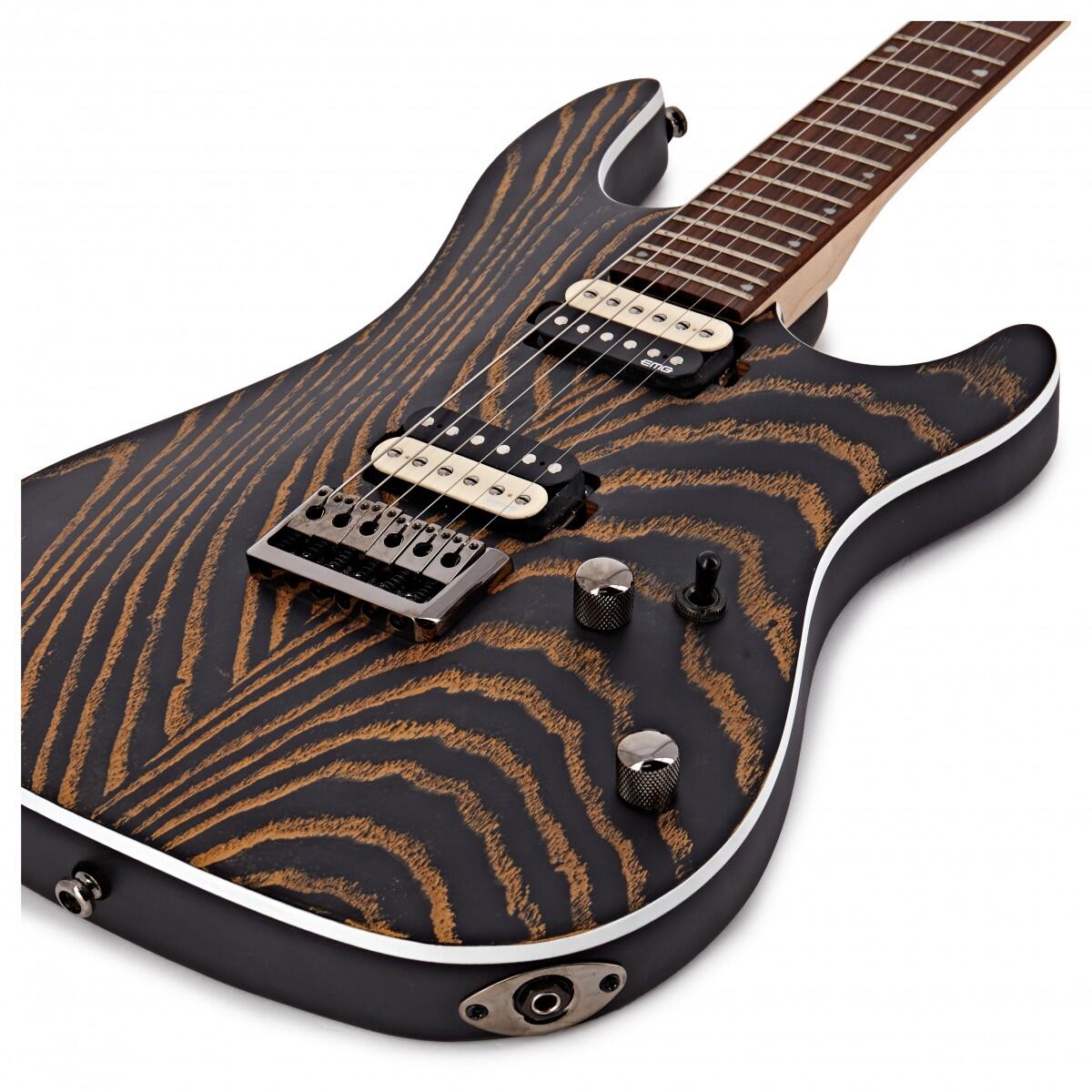 Cort - KX300 Etched Black Gold - KX-Series Cort med krop i mahogni og top i asketræ (sandblæst). Halsen i hård kanadisk ahorn og gribebrættet i Pau Ferro - 24 bånd og Die Cast stemme-mekanismer og EMG® RetroActive Super77 pickupper.