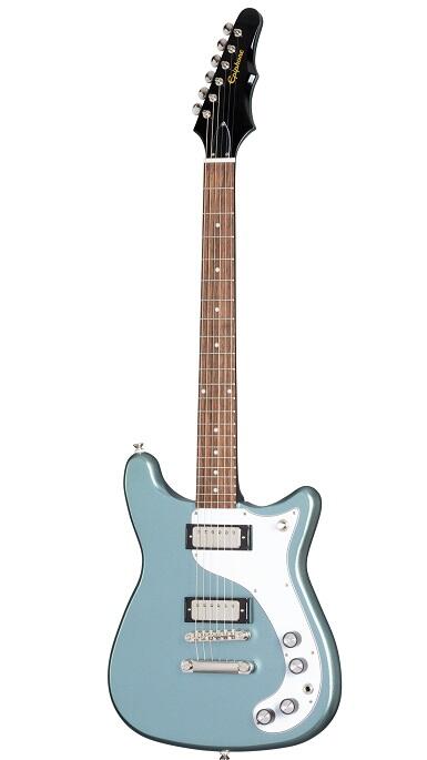 Introduktion af den begrænsede udgave af Epiphone 150th Anniversary Wilshire. Denne hårdtrockende guitar blev skabt til fejring af Epiphones 150-års jubilæum. Siden introduktionen i 1959 har Wilshire været en af Epiphones mest succesrige originale solid body elektriske guitarer. Denne specielle jubilæumsversion har en Wilshire dobbelt-udskåret mahognikrop i asymmetrisk stil for enestående adgang til de øvre bånd, en mahognihals med en komfortabel 60'er Slim Taper™ D-profil og en indisk laurbær-gribebræt med dot-indlæg. Headstocken er den populære "Batwing"-stil med Wilkinson® six a på en plade inline-tunere med metalknapper. Elektronikken har et par Gibson™ Mini a Humbuckers™ fremstillede i USA, der er forbundet til CTS™ potentiometre a og en Switchcraft 3-vejs vippekontakt og udgangsstik. Det medfølgende 150th Anniversary Historic Hardshell Case har nikkel hardware og et Epiphone 150th Anniversary logo.