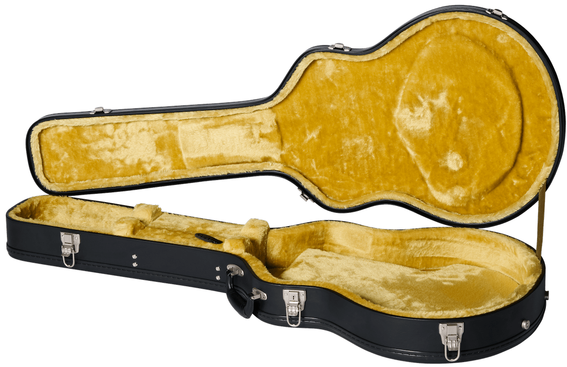 Epiphone 1962 ES-335 Reissue er en hyldest til en af de mest ikoniske guitarer nogensinde. Denne model kombinerer elementer fra solidbody og hollowbody design og leverer resonans, sustain og minimal feedback takket være det indre maple centerblock. Halsen er udført i ét stykke mahogany med SlimTaper™ C-profil og afrundede kanter, hvilket giver komfort og spilbarhed i topklasse. Rosewood gribebrættet har 22 medium jumbo bånd og mother-of-pearl small block inlays, mens headsettet prydes af Epiphone-logo og Gibson Crown i aged mother-of-pearl. Elektronikken består af to Gibson Custombucker humbuckers, håndkablet til CTS potentiometre og Black Beauty papir-i-olie kondensatorer for autentisk ES-335 lyd. Nickel hardware, ABR-1 Tune-O-Matic bridge og Historic Reissue Stop Bar tailpiece fuldender det klassiske setup. Leveres i en vintage-style hardshell case med Goldenrod interiør.