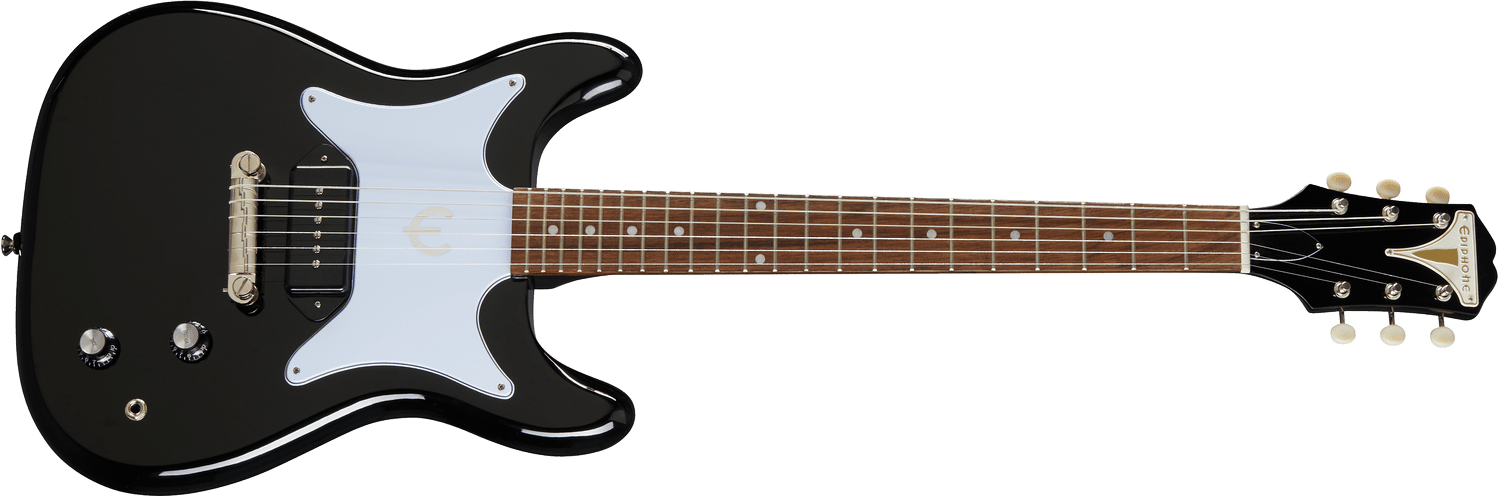 Epiphone Coronet er en hyldest til Epiphones første succesfulde solid body design fra 1958. Den symmetriske mahogany krop med double-cutaway kombinerer vintage-look med komfort, mens den single P-90 Dogear pickup leverer en kraftfuld, autentisk tone til rock, blues og mere. Halsen i mahogany med Medium C profil og Indian Laurel gribebræt med 22 bånd giver præcis og behagelig spiloplevelse. Den hvide butterfly pickguard med foil E-logo og Lightning Bar wraparound bridge fuldender det klassiske design.