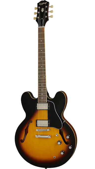 Epiphone - ES-335 Vintage Sunburst - Sød og sjælfuld semi-hollowbody. ES-335 er Epiphones version af den historiske ES-335, der har imponeret guitarspillere over hele verden i over seks årtier. Fra sin første optræden i 1958 satte Gibson™ ES-335 en uovertruffen standard. Vores Epiphone ES-335 er ingen undtagelse. Det er simpelthen et af de bedste tilbud i dag for guitarspillere, der ønsker den klassiske lyd fra en ES-335 til en overkommelig pris. ES-335 er udformet med en lagdelt ahorntop, bagside og sider kombineret med en massiv ahorn-tone-blok for at skabe den fantastiske sustain, varme og resonante tone. Epiphones Alnico Classic PRO™ Humbuckers leverer en bred vifte af vintage-lyde, mens den afrundede C-halsprofil er ekstremt behagelig og nem at spille på, og headstocken har Kalamazoo-formen i 60'er-stilen.
