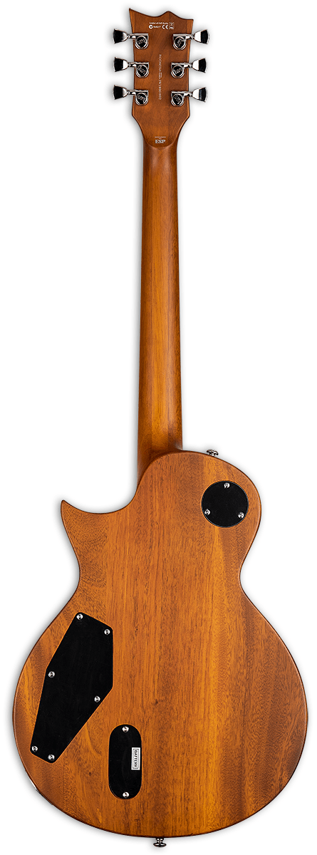 ESP EC-1000T - Honey Burst Satin - LTD EC-1000 serien er stadig en af ​​ESP´s mest populære guitarer, der tilbyder den tone, fornemmelse, udseende og kvalitet, som arbejdende professionelle musikere har brug for i et instrument, sammen med de priser, som seriøse musikere har råd til. Med EC-1000T får guitarister en traditionel krop i fuld tykkelse, der er "chambered" / udhulet så vægten bliver mindre, hvilket gør belastningen på skuldre og nakke mindre, under lange live shows. Den kommer med set-thru neck konstruktion for nem adgang til de højere bånd, men et aspekt af EC-1000T er alt andet end old-school: EC-1000T er den første produktionsguitar, der tilbyder et sæt nye Fishman Fluence® Open Core Classic Humbucker pickups med 3 voicings. På neck pickuppen, tilbyder Voice 1 den eftertragtede vintage P.A.F. tone, Voice 2 er en "airy chime", og Voice 3 er en vintage single-coil. På Bridge pickuppen er Voice 1 "the P.A.F.", Voice 2 er den klassiske hot-rodded humbucker, og Voice 3 er en "overwound single coil". Den lydiske alsidighed af denne guitar er forbløffende. EC-1000T er lavet med en mahogni krop med en flammet ahorntop og en fremragende Honey Burst Satin-finish.