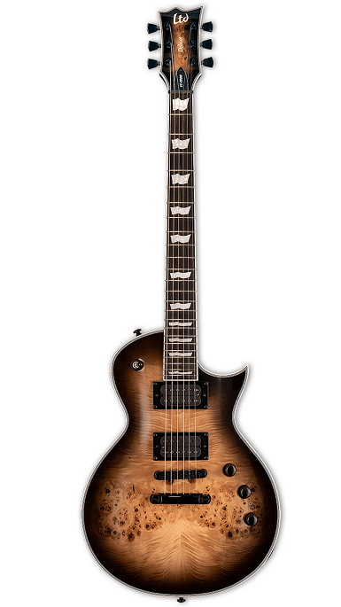 ESP - LTD EC-1000 - BLACK NATURAL BURST - NEW - LTD EC-1000 har konsekvent rangeret blandt verdens mest populære guitarmodeller de sidste 20+ år fordi de leverer en høj kvalitets single-cutaway guitar form designet til seriøse musikere til en pris, alle har råd til. Denne enestående EC-1000 tilbyder en "burled poplar top" på en mahogni krop med en tredelt mahogni hals og Macassar ibenholt gribebræt. Den kommer med et sæt Seymour Duncan Sentient (neck pickup) og Pegasus (bridge pickup) med højt output, der kan deles med en push-pull-kontrol, til "mind blowing" toner, til metal, rock, fusion, progressiv rock og andre genrer. Det inkluderer "Mother Of Pearl" flag-indlæg på halsen, fuldt ud bindinger på krop, hals og hovedet og fremtrædende komponenter som LTD-låse tunere og en TonePros locking TOM bridge og tailpiece. Fås i Black Natural Burst og Blue Natural Fade-finish.
