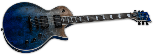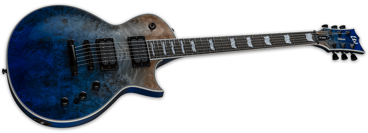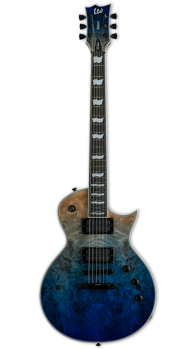 ESP - LTD EC-1000 - BLUE NATURAL FADE - NEW - LTD EC-1000 har konsekvent rangeret blandt verdens mest populære guitarmodeller de sidste 20+ år fordi de leverer en høj kvalitets single-cutaway guitar form designet til seriøse musikere til en pris, alle har råd til. Denne enestående EC-1000 tilbyder en "burled poplar top" på en mahogni krop med en tredelt mahogni hals og Macassar ibenholt gribebræt. Den kommer med et sæt Seymour Duncan Sentient (neck pickup) og Pegasus (bridge pickup) med højt output, der kan deles med en push-pull-kontrol, til "mind blowing" toner, til metal, rock, fusion, progressiv rock og andre genrer. Det inkluderer "Mother Of Pearl" flag-indlæg på halsen, fuldt ud bindinger på krop, hals og hovedet og fremtrædende komponenter som LTD-låse tunere og en TonePros locking TOM bridge og tailpiece. Fås i Black Natural Burst og Blue Natural Fade-finish.