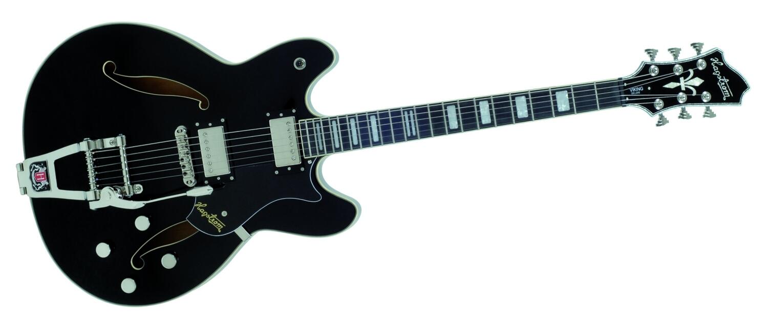 Hagström Tremar Viking Deluxe Black - God All-round Semi hollowbody guitar - lavet i flammet ahorn og med Hagströms Tremar Tremolo system.