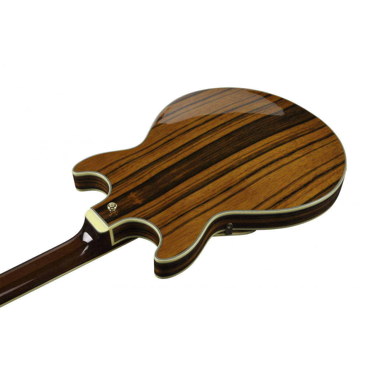 Ibanez - AM93ME-NT (Natural High Gloss) Artcore Expressionist. AM93ME er en af modellerne i Ibanez Artcore Expressionist-serien. En guitar med lidt mindre krop end en traditionel 355. guitar, med en central mellemtone. Guitaren er meget ufølsom overfor feedback selv ved meget høj lydstyrke. En guitar, der fungerer godt, uanset om du spiller "clean" eller virkelig "rock´et" og alt derimellem. Guitaren har en 3-delt ekspressionistisk Nyatoh- / ahorn træ, justeret / indstillet (limet på kroppen) hals, en mellemtyk hals med en rund, C-formet profil. Perfekt til solo- og akkordspil. Gribebrættet er lavet af ibenholt med traditionelle akrylblokindsatser og -binding. Krop, sider og bund af Macassar ibenholt.