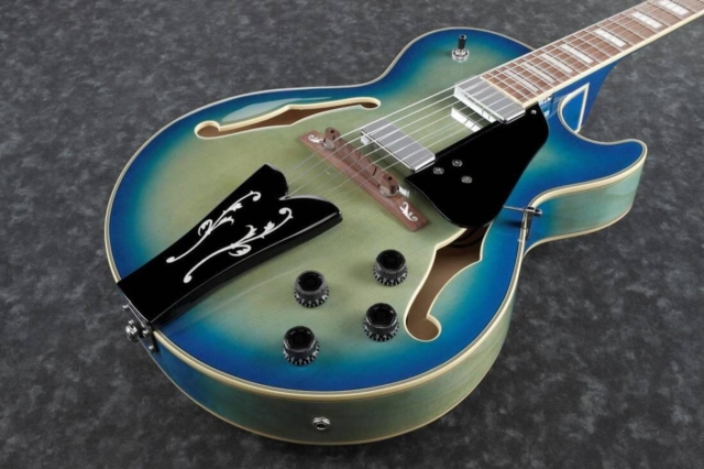 Ibanez - GB10EM-JBB - Hollowbody - George Benson Signature - Jet Blue Burst - Flot hollowbody signatur guitar fra Ibanez. Lavet i Spruce (gran) på fronten, Lindetræ på sider og bund. Halsen er i Nyatoh træ og valnøds gribebræt. Super lækker guitar fra Jazz legenden George Benson.