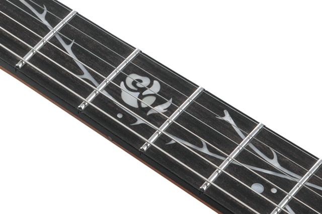 The body is designed to be comfortable and without sharp edges so that you can both stand or sit and play for hours on end. The rounding of the edges is softer on the back than on the front. The neck meets the body with Ibanez's new Super All Access Neck Joint, which is a further development of their well-proven All Access Neck Joint.