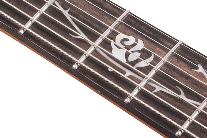 The body is designed to be comfortable and without sharp edges so that you can both stand or sit and play for hours on end. The rounding of the edges is softer on the back than on the front. The neck meets the body with Ibanez's new Super All Access Neck Joint, which is a further development of their well-proven All Access Neck Joint.