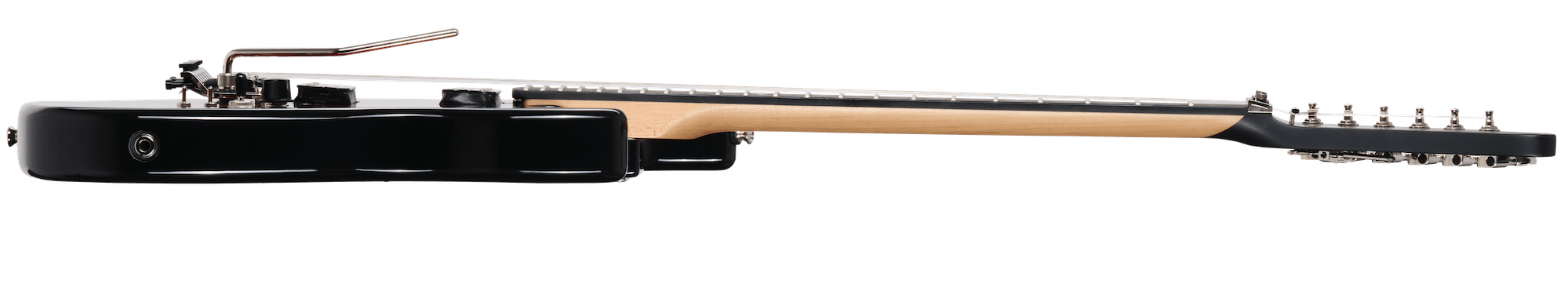 Floyd Rose 1000 tremoloen med R2 locking nut sikrer stabil stemning – også ved kraftig brug af vibratoarmen. De USA-fremstillede Kramer Eruption-pickupper, udviklet af Gibson-luthier Jim DeCola, er monteret direkte i kroppen for bedre sustain. Med 3-vejs pickupvælger og coil split på begge pickupper får du både fuldfede humbuckerlyde og klare singlecoil-lyde. En enkelt master volume gør det hurtigt at skrue op, når soloen kalder. Gigbag medfølger.