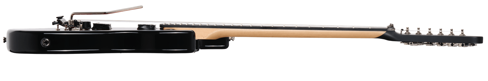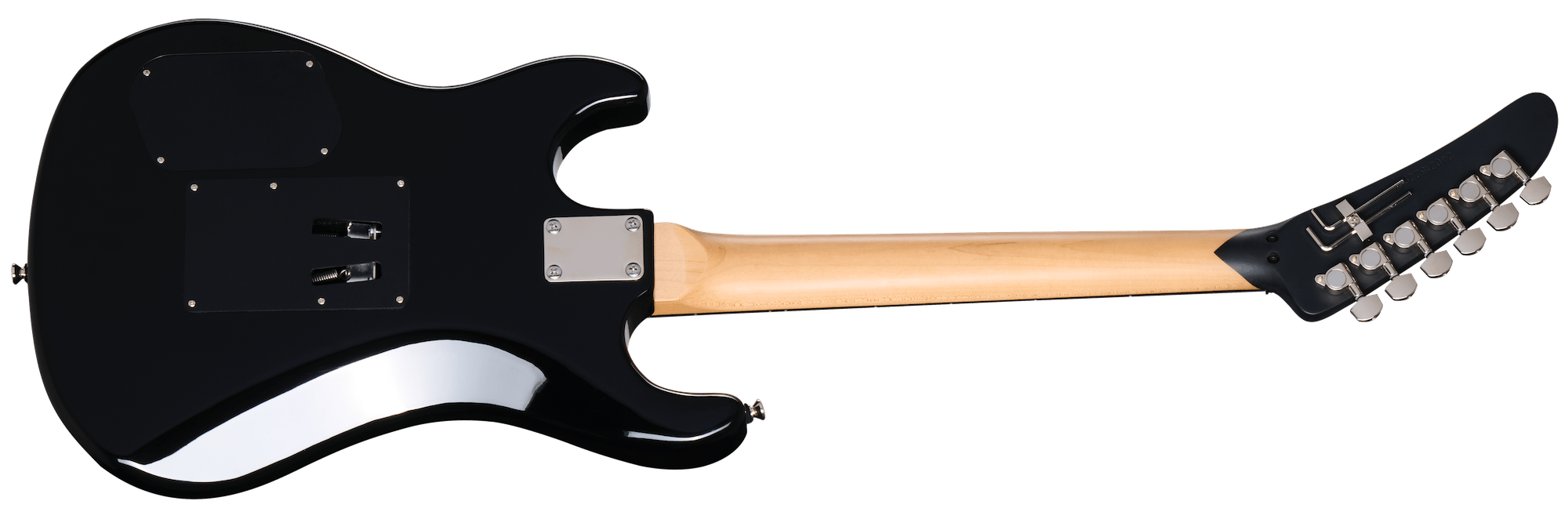 Floyd Rose 1000 tremoloen og R2 locking nut sørger for ekstrem stemmestabilitet, selv ved vild whammy bar-brug. Den thermally aged hard maple-hals er bolt-on med satinfinish for hurtig spilbarhed, og det mørke ebony-gribebræt med 22 jumbo bånd giver et stramt og responsivt feel. SlimTaper C-profilen og compound radius 10"–14" giver både komfort i åbne akkorder og masser af plads til bends og shred længere oppe.