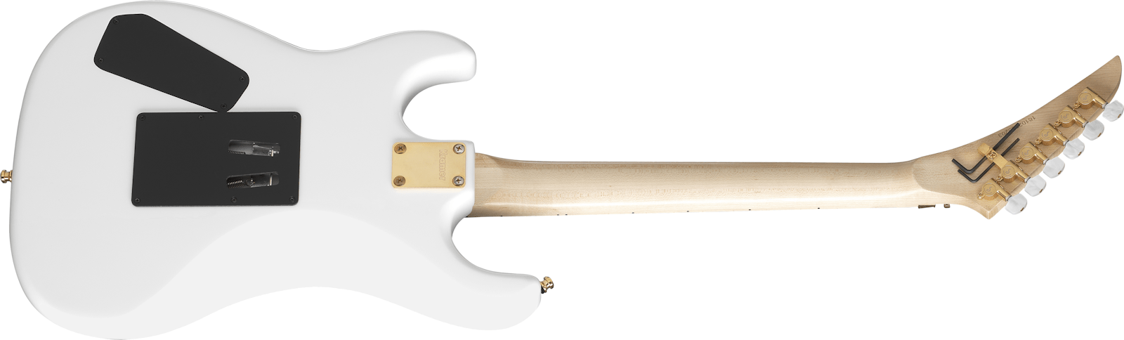 Floyd Rose 1000 Series tremoloen og R2 locking nut sikrer ekstrem stabilitet, selv ved aggressiv brug af vibratoarmen. Headstocken matcher guitarens finish og rummer både guldfarvet string retainer bar og værktøjsholder på bagsiden.