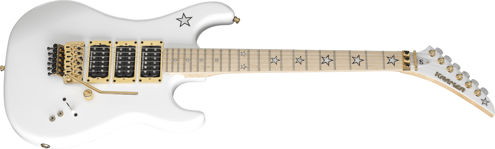 Kramer Jersey Star er en ægte 80’er-legende – og denne moderne udgave leverer præcis den attitude, tone og ikoniske stil, som gjorde originalen berømt. Kroppen er udført i let alder og prydet med det klassiske Mother-of-Pearl Jersey Star-logo på øverste horn. Den tre-delte ahornhals er bolt-on med en Elliptical “C” profil, som giver en hurtig og behagelig spillefornemmelse. Det lyse maple-gribebræt har 22 medium jumbo bånd, 16" radius og de karakteristiske stjerne-inlays med dobbeltstjerne på 12. bånd.