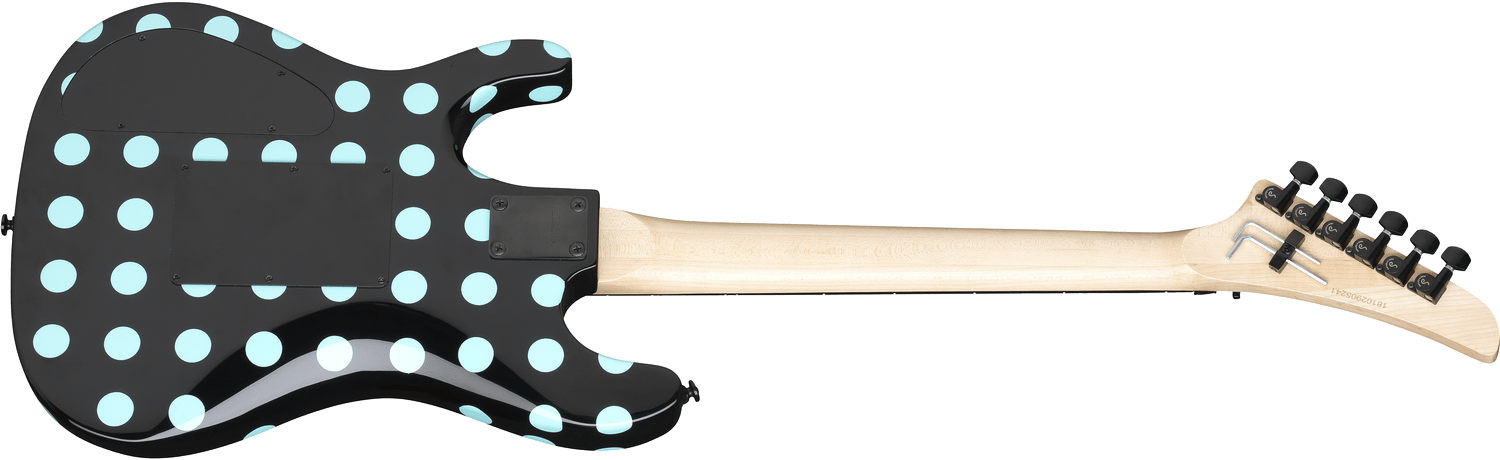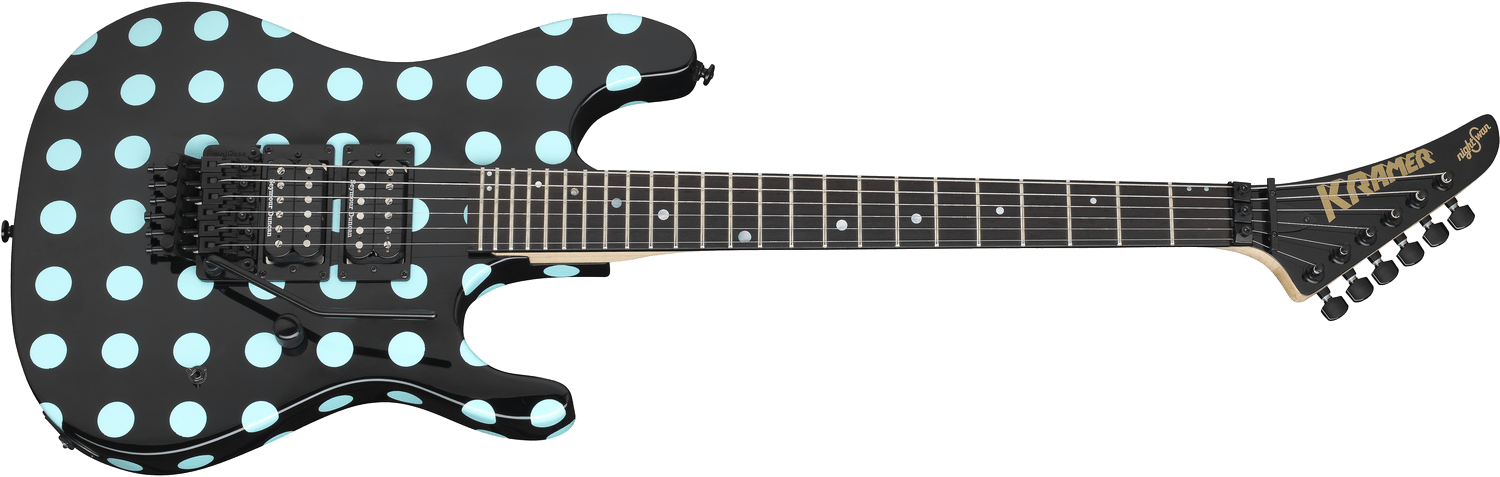 Kramer Nightswan er tilbage – og mere iøjnefaldende end nogensinde. Denne moderne version af den legendariske slut-80’er model kombinerer klassisk shredder-DNA med moderne byggekvalitet. Kroppen er udført i mahogni og har den karakteristiske Ebony-finish med blå polkaprikker, som har gjort modellen ikonisk. Den bolt-on 3-delte ahornhals har en komfortabel “C”-profil og et hurtigt ebony-gribebræt med 24 medium jumbo bånd, 16" radius og unikke wave-inlays.