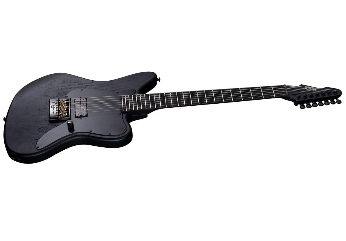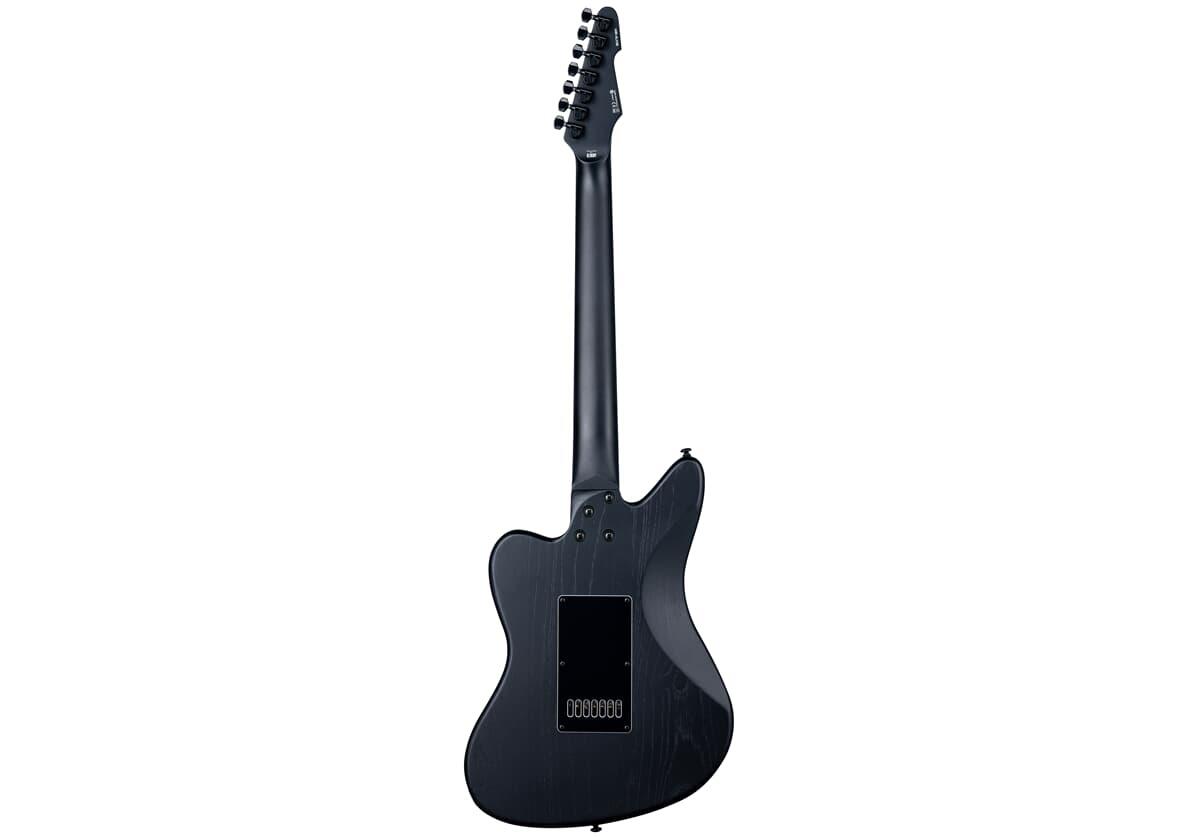 LTD AW-XJ7 Baritone EverTune i Black Open Grain Satin-finish tilbyder en 7-strenget, 27" skala barytonskala, EverTune-bro, bolt-on-konstruktion, en resonant sump-askekrop og en femdelt ahorn/valnød/padauk-hals med Macassar ibenholt gribebræt, 24 ekstra børstet stål gribebræt, 24 extra-jumbo stainless steel frets, a brushed black pickguard, LTD locking tuners, og en single DiMarzio D-Activator 7 passive pickup der kan splittes med en push/pull volume control. Includes ESP hardshell form fit case.