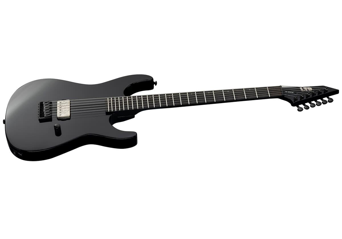 LTD M-201 Baritone HT i blank sort finish har bolt-on-konstruktion i 27" barytonskala, med mahogni-krop og en komfortabel tredelt ahornhals med palisander-gribebræt, 24 ekstra-jumbo-bånd, en LTD fast hardtail-bro med string-thru-body og en enkelt direkte monteret ESP LH-150B pickup med antique nickel cover, der kan splittes til single-coil lyde med push-pull volumen knappen.