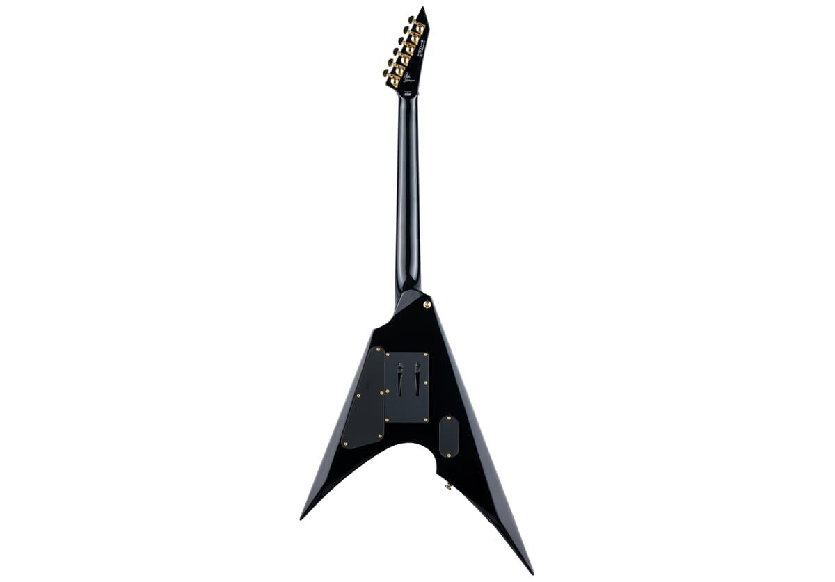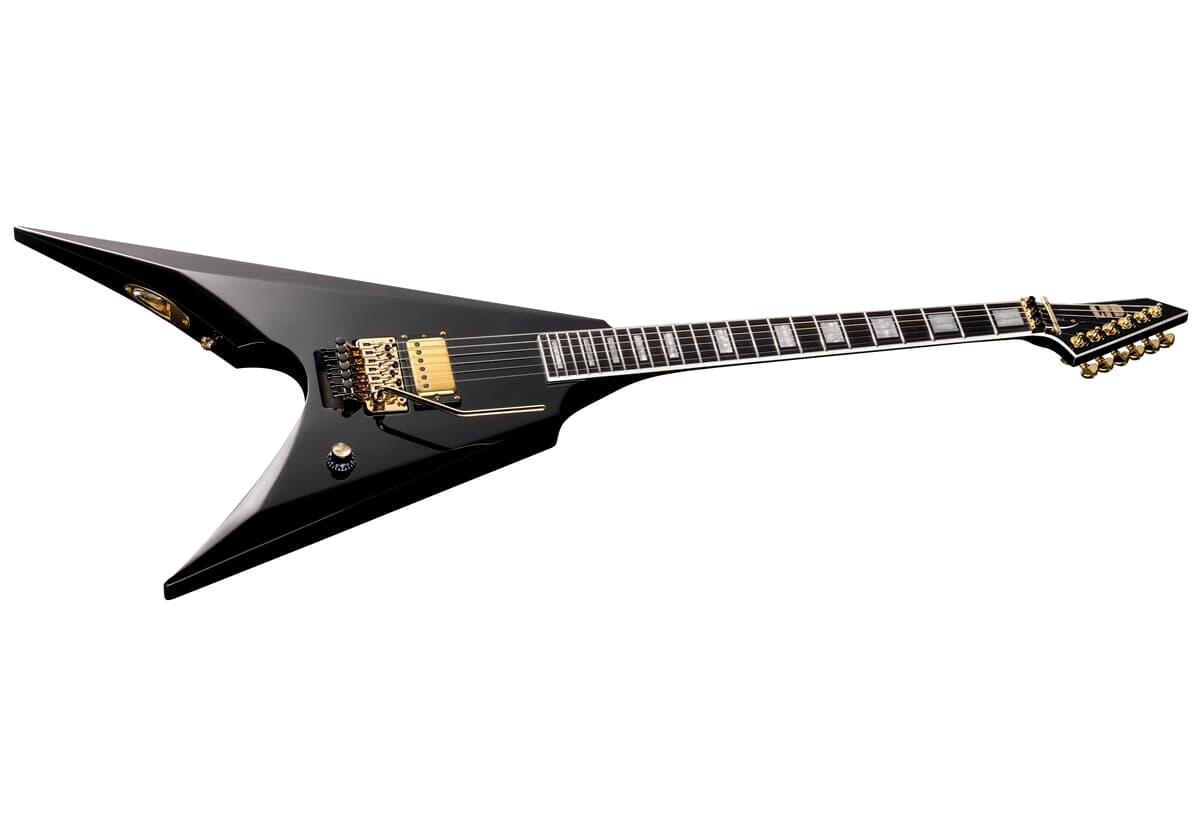 LTD Signature Series MSV-1 er nu i en Black Gloss finish med guld hardware og har neck-thru-body konstruktion i 24,75" skala, en mahogni krop med ahorn top, en tredelt mahogni hals, Macassar ibenholt gribebræt med pearloid blok indlæg og 24 extra-jumbo stainless steel bånd, a distinctive top hat volume knap, Grover tuners, en guld Floyd Rose 1000 double-locking tremolo, og en enkelt EMG JH James Hetfield Humbucker pickup med et brushed gold cover. Inkl. ESP hardshell form fit case.