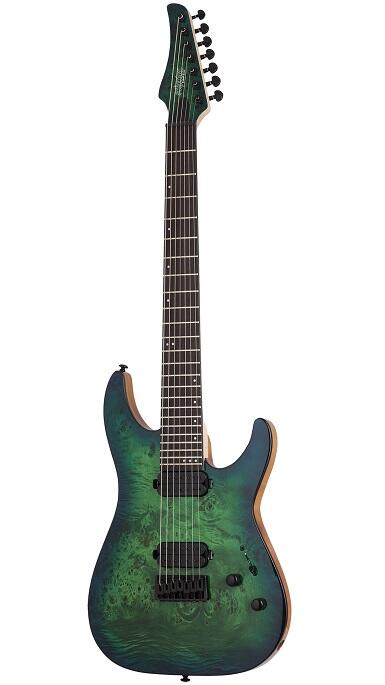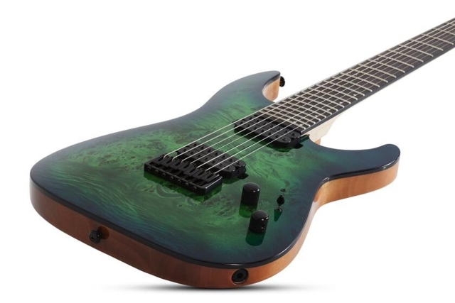SCHECTER - C-7 PRO AQB - Schecter Custom Hardtail w/ String Thru Body, kroppen i mahogni med poplar burl top, halsen i Ahorn og gribebræt i wenge, neck pick-up: Schecter Diamond Decimator og Bridge pickup: Schecter Diamond Decimator. Lavet i Indonesien.