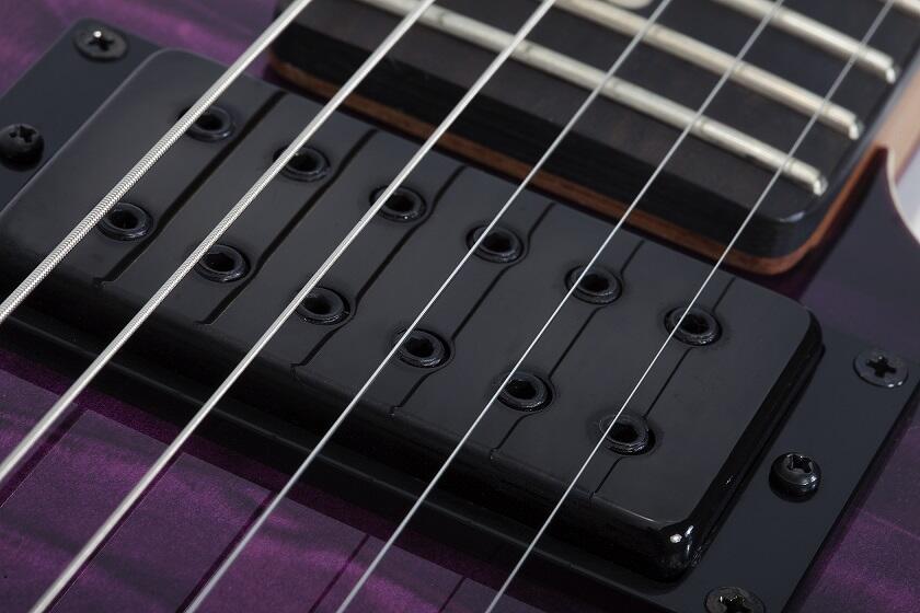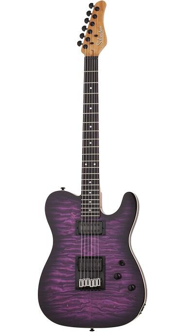 SCHECTER - PT PRO-EBONY TPB (Trans Purple Burst) - Lavet i Elletræ med "Quilted Maple" top (ahorn), Schecter locking stemmeskruer, halsen er lavet i "ristet" ahorn med ibenholt gribebræt, 22 bånd og Schecter USA Z-Plus pickupper. Lavet i Indonesien.
