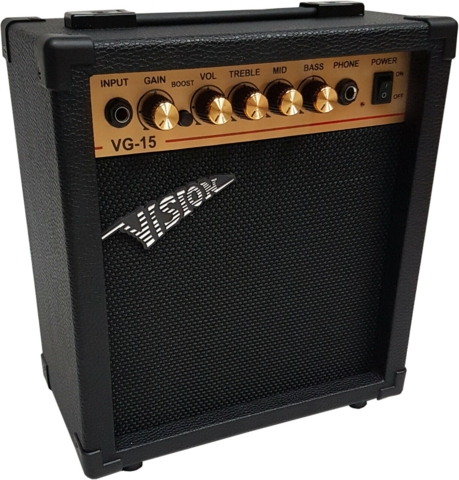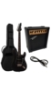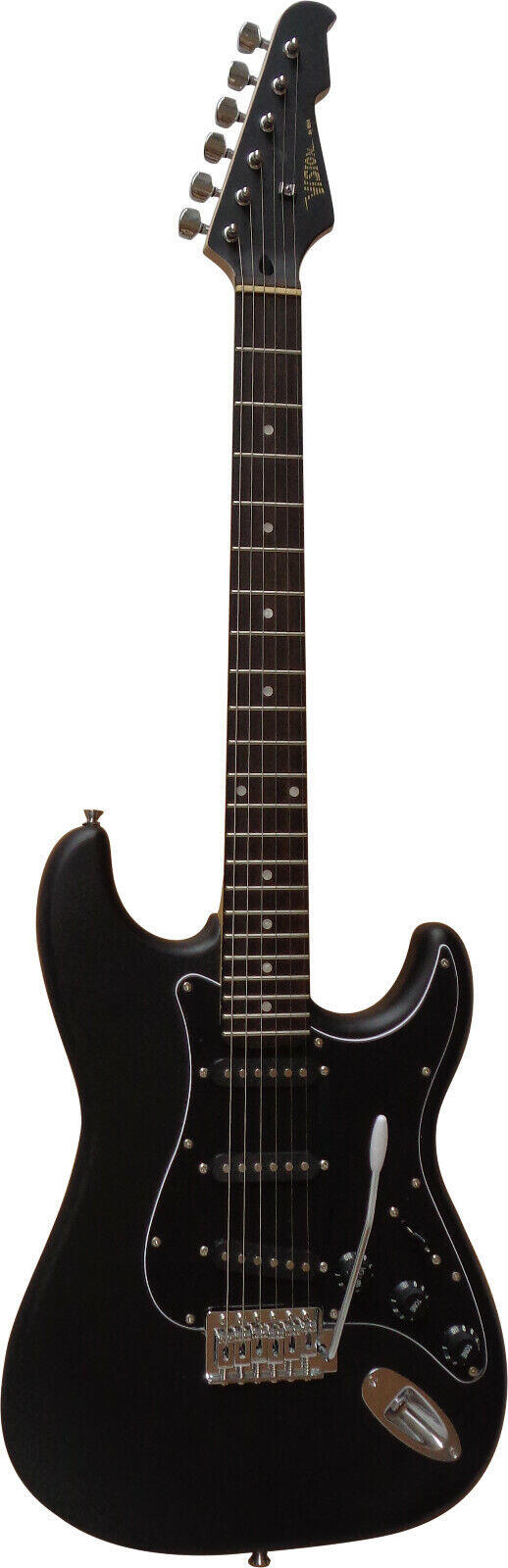 Vision El-guitar-sæt ST5BM - Standard stratocaster i mat sort - Ahorn hals og gribebræt i valnød. God begynder el-guitar - Pakken er med en Vision 15 watts guitarforstærker + taske og kabel.