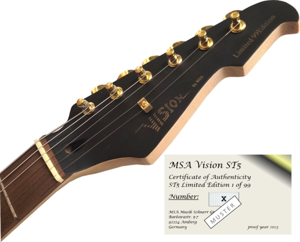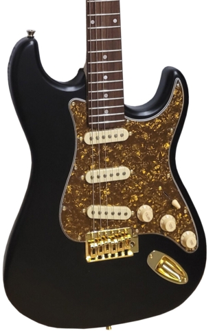 Vision - Limited Edition! 1 of 99 Mat Sort - Guld - Standard stratocaster i en limited version fra MSA Vision. Der er produceret 99 stk. i alt. God bedgynder el-guitar til prisen.