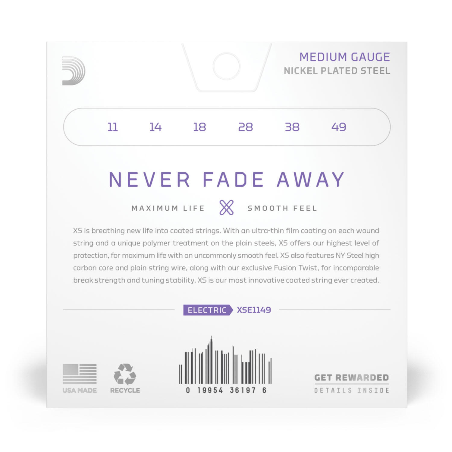 D'Addario - XSE1149 - XS puster nyt liv i en verden af coatede strenge. Med en ultra tynd belægningsfilm på de spundne strenge og en unik polymerbehandling på de uspundne strenge. XS tilbyder vores højeste niveau af beskyttelse for maksimal levetid kombineret med en usædvanlig glat spillefølelse. XS har også den unikke NYSteel kulfiber i kombination med vores eksklusive Fusion Twist, som giver uovertruffen styrke og tuning stabilitet. XS er den mest innovative coatede streng, der nogensinde er skabt.