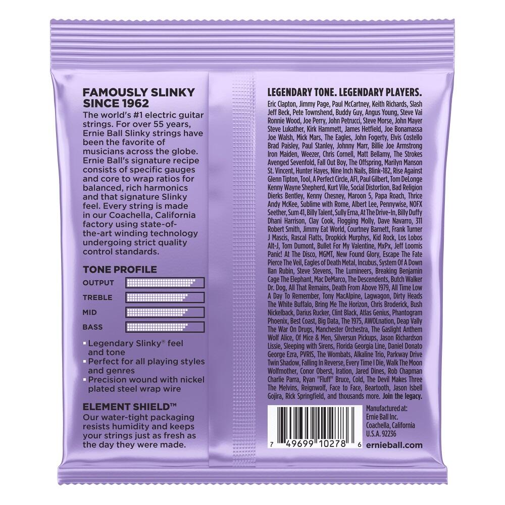 Ernie Ball - EB-2227 - Ultra Slinky Nickelwound 10-48 - som regular slinky (diskant strenge), men med 3 tyndere bas-strenge.