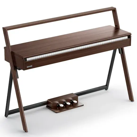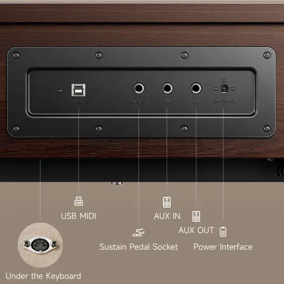 Donner Oura R300 bringer varme og stil til dit hjem med sit elegante amerikansk-inspirerede landstilsdesign i træ og sort metal. Klaveret kombinerer et unikt look med avancerede funktioner og en kraftfuld lydoplevelse.