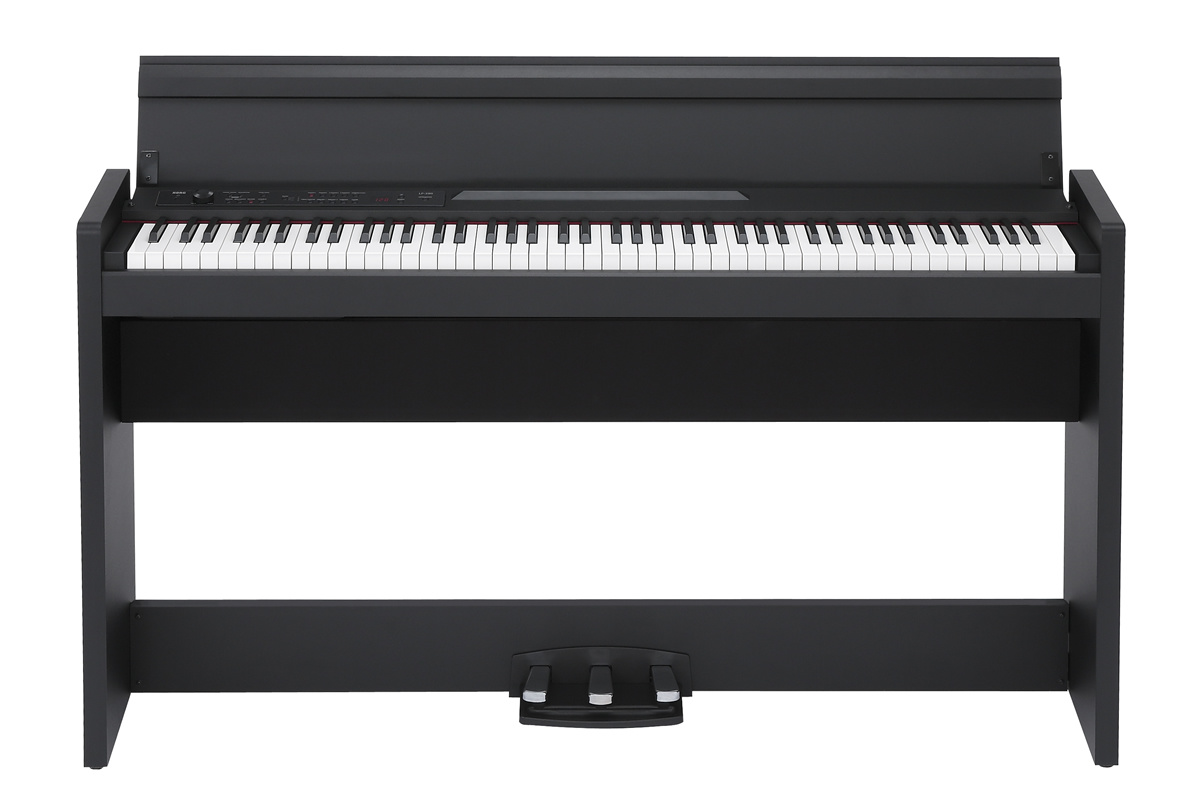 Korg - LP-380 - U RW Rosewood - PakkeTilbud - Digital piano med klaverbænk og hovedtelefoner Gewa HP1 - Autentisk flygeloplevelse i et slankt design, der tilføjer stil til dit hjem. LP-380 giver en strålende klaverlyd i et "low profile, slim design". Kabinettet ser stilfuldt ud også selvom hoveddækslet er lukket. Højt-output fra forstærkeren og højttalerne gengiver nøjagtigt og præcist en realistisk klaverlyd, mens Korg´s RH3 keybed muliggør ekspressive præstationer.