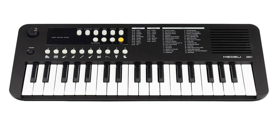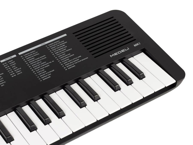 Medeli MK1 - Black - keyboard, 37 tangenter i ministørrelse, med USB-C-kabel til opladning og MIDI, 1 x 2 watt - sort. Medeli har mange års erfaring med at udvikle instrumenter til undervisningsformål. Denne tilføjelse til kataloget er beregnet til de allermindste, men kan også nemt tages med på farten, puttes i en rygsæk eller endda bruges som MIDI-keyboard.